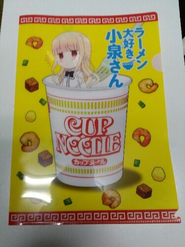 こんばんわ! 深夜のセブンでお買い物してきました。 今、セブンイレブンではカップヌードルを2個買うと「ラーメン大好き小泉さん」のファイルが貰えます。 4種類ある中で私が貰ってきたのはこれ。 この小泉さんめっちゃ可愛くないですか? 他のも欲しい気も…